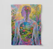 Umano trasparente con un giardino in miniatura con pittura fauvismo stile arte