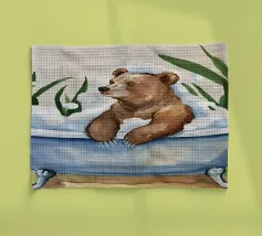 Un momento di puro relax: questa illustrazione, disegnata con amore, mostra un topolino che fa un bagno accogliente, con gli occhi chiusi, circondato da acqua calda e delicate bolle di sapone. Lo stile morbido dell'acquerello e i colori pastello conferiscono al motivo un'atmosfera calma e sicura, piena di leggerezza, e l'immagine parla della cura di sé, del benessere e dei piccoli momenti di felicità nella vita quotidiana. Giocoso e rilassante, invita a fermarsi e ad assaporare il momento.