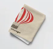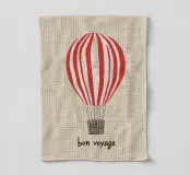 Il motivo mostra la scritta "Bon Voyage" sotto una mongolfiera a strisce bianche e rosse. Il design minimalista su sfondo beige ricorda i poster di viaggio francesi e irradia leggerezza e senso di avventura. Un murale moderno e affascinante per tutti coloro che amano i viaggi e l'avventura.