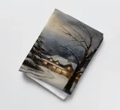 Un pittoresco villaggio natalizio risplende sotto un tranquillo cielo invernale. Al centro si trova un albero di Natale decorato a festa, circondato da case illuminate in modo accogliente, le cui luci scintillano nella neve. La scena emana pace, sicurezza e la magia delle tranquille notti invernali: un motivo perfetto per gli amanti della classica atmosfera natalizia.