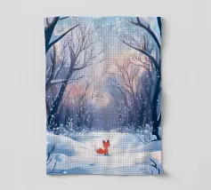 Con un sorriso giocoso, Voxy modella una piccola scultura di neve in una foresta innevata. Il blu tenue, la delicata nevicata e la simpatica energia invernale ne fanno un'illustrazione perfetta per i bambini e gli amanti delle vacanze.