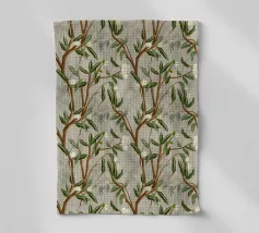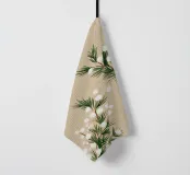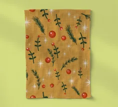Un morbido motivo botanico dipinto a mano con rami di pino invernale e delicate bacche di neve bianche. Le calde tonalità del beige si fondono con espressivi tratti pittorici per creare un disegno stagionale sereno e naturalmente elegante. Perfetto per aggiungere un'atmosfera invernale e rilassante a qualsiasi interno moderno.