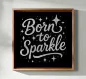 Messaggio "Born to sparkle" (nato per brillare) in lettere d'argento lucido tela