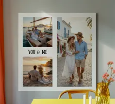 Collage con le proprie foto: 9 riquadri e testo, personalizzabile tela