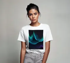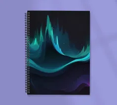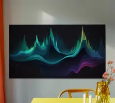 Vibranti motivi a onda illustrano le frequenze sonore in un colorato paesaggio digitale. Il design è caratterizzato da linee fluide nei toni del blu, del verde e del viola, che creano profondità e movimento.