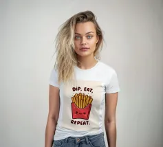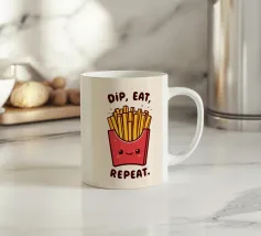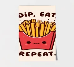 Cartone di patatine fritte "Immergere, mangiare, ripetere tela