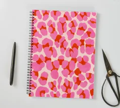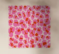 Moderno motivo leopardato in colori a contrasto forti e di tendenza. Rosso, rosa e abricot. Alcuni prodotti hanno un cuore con questo motivo.