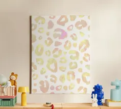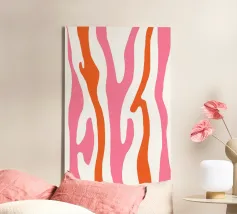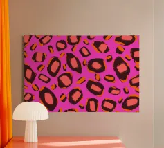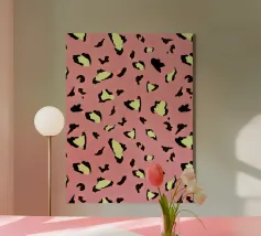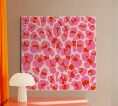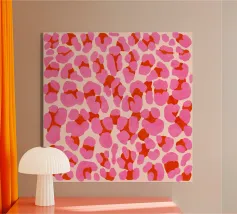 Motivo leopardato. Moderno in rosa, rosso e abricot. Con cuore. tela