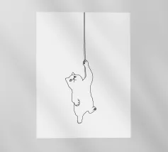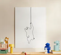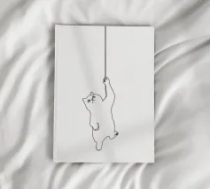 Disegno lineare minimalista di un gatto appeso a una corda | Moder tela