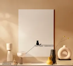 Lo spirito giocoso e avventuroso di un gatto appeso a un filo con questo disegno minimalista. Un'opera d'arte astratta moderna che simboleggia la curiosità, l'agilità e la malizia felina.