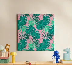 Motivo leopardato pop su sfondo rosa pastello, con dettagli in giallo chiaro e nero. Questo design audace e di tendenza dona un tocco di energia e stile a qualsiasi accessorio o mobile, ideale per chi vuole aggiungere un look vivace e originale ai propri spazi.
