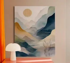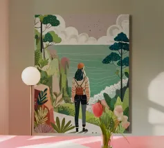 Linee ondulate, forme squadrate e tanto rosa polveroso da rendere orgoglioso il vostro terapeuta. Il poster 00904 è puro minimalismo da algoritmo di metà secolo.