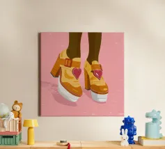 Una composizione astratta minimalista e giocosa di forme semplici e ritagliate in una tavolozza di rosa, rosso e crema. L'opera d'arte è leggera, allegra e ha un'atmosfera moderna e spontanea.