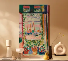 vista di una barca a vela da dietro la finestra tela