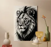 Ritratto di leone in bianco e nero tela