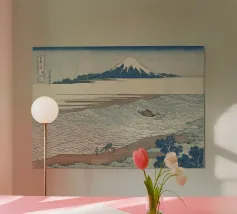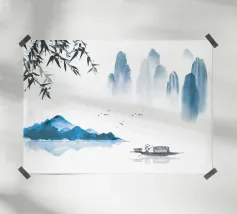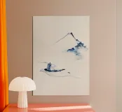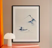 A person in a small boat on a river with Mount Fuji carta hahnemühle