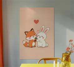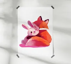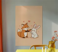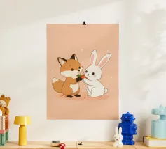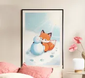 La volpe Voxy abbraccia dolcemente il suo piccolo amico di neve sotto il sole invernale. Colori tenui, impronte giocose e un'accogliente scena innevata rendono quest'opera d'arte perfetta per le camerette dei bambini, le nursery e gli amanti dell'arredamento invernale. Un'illustrazione che fa sciogliere il cuore, piena di amicizia e calore.