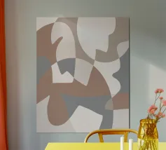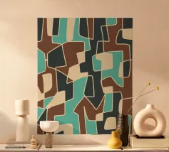 Questo disegno artistico fonde elementi floreali organici con forme geometriche moderne per un'estetica raffinata e vintage-moderna. Perfetto per gli amanti dell'art déco, per gli appassionati di arte astratta, per i fan delle tonalità della terra e per chiunque apprezzi l'elegante fusione di design botanico e geometrico con colori caldi e naturali.