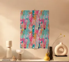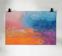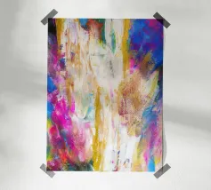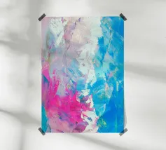 Le vibranti tonalità di rosa, blu e turchese si fondono in un vivace disegno astratto, creando un senso di movimento ed energia. I tratti audaci e i colori stratificati evocano un'atmosfera dinamica ed espressiva.