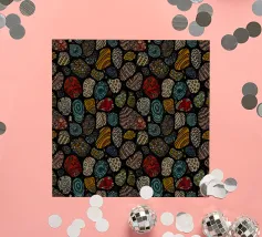 Un ricco motivo astratto con forme organiche e superfici strutturate in colori caldi come verde acqua, rosso ruggine, giallo oro, corallo, beige e blu su sfondo nero. Perfetto per gli amanti dell'arte astratta, gli appassionati di texture, i fan dei colori caldi e tutti coloro che apprezzano le forme organiche con dettagli artistici e la raffinatezza della terra.