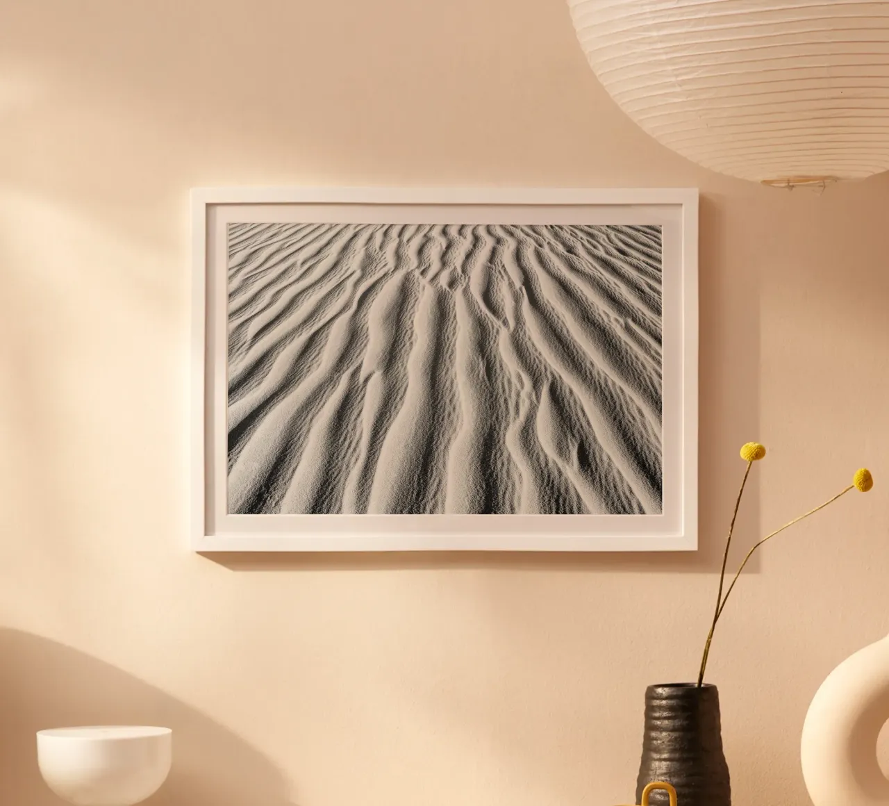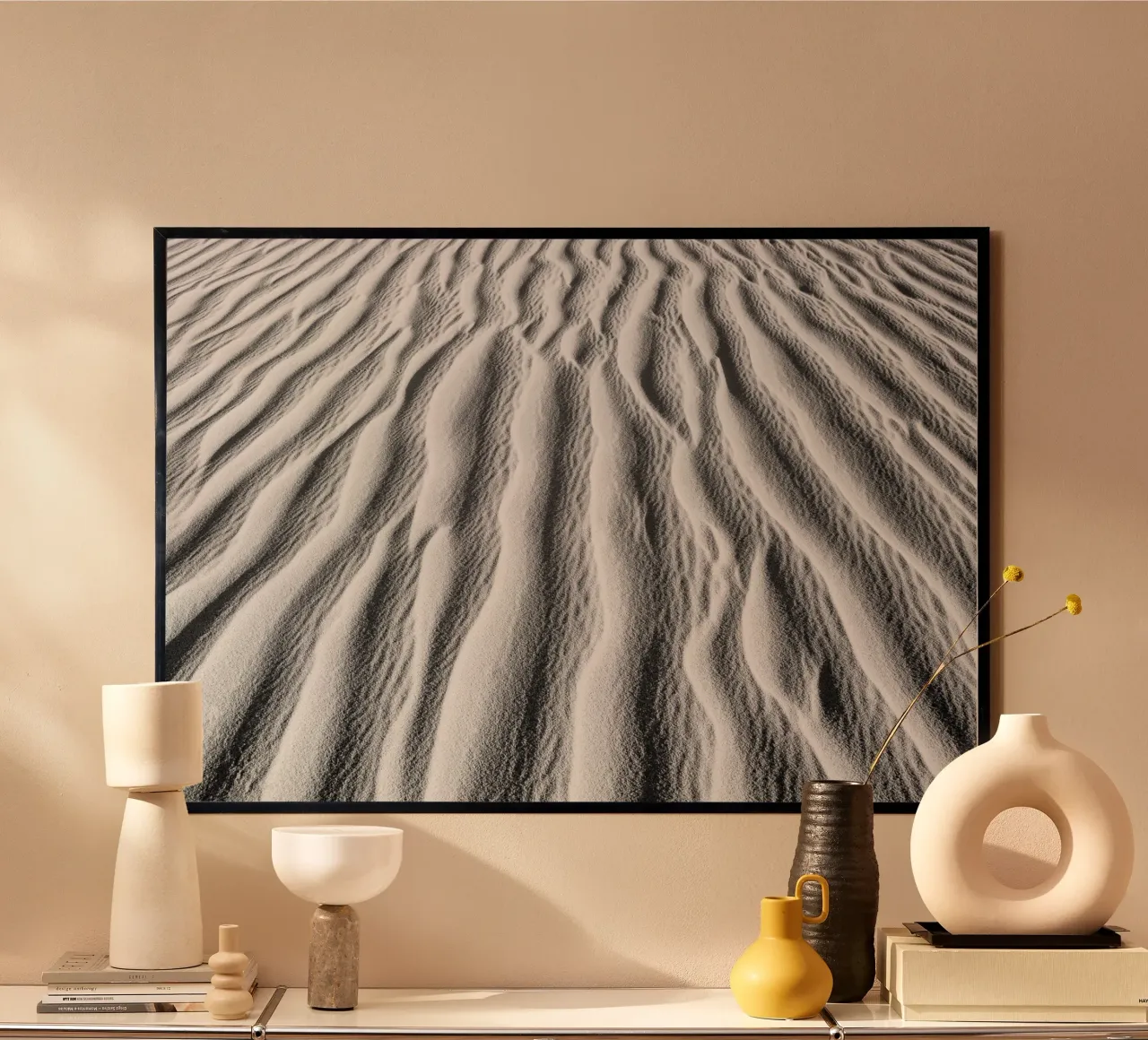 Modello di sabbia nel deserto del Sahara. Fotografia astratta nel deserto dell'Algeria. Paesaggio naturale nel Sahara. Fotografia in bianco e nero in Africa. Linee, luci e ombre su una duna di sabbia nel deserto.