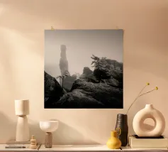 Albero in bianco e nero sulla cima di una montagna carta hahnemühle