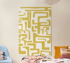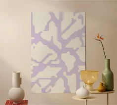 Motivo artistico astratto con sfondo lavanda e linee bianche stravaganti e labirintiche che ricordano un codice segreto. Questo disegno unico e creativo è perfetto per essere utilizzato in vari progetti grafici, tra cui sfondi di siti web, copertine di libri o disegni tessili, e piacerà a chiunque sia alla ricerca di motivi intricati e stimolanti.