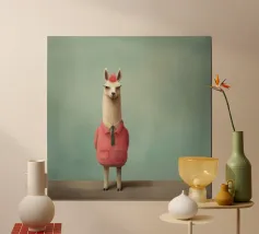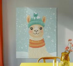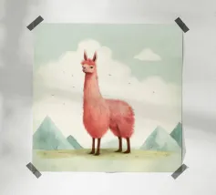 Allegro lama con sciarpa a righe colorate carta hahnemühle