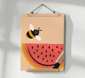 Un fresco mix di anguria succosa e api indaffarate! Questo disegno mostra la bellezza di una succosa anguria e delle api che le ronzano intorno.