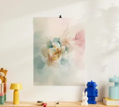 Un delicato pezzo floreale astratto con una forma centrale simile a un fiore in bianco e rosa tenue, con linee più scure simili a inchiostro che si irradiano verso l'esterno, come se svelassero l'anima di un fiore su uno sfondo tenue. Stile Melissa Herrington.