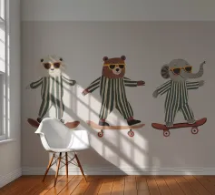 Animali che praticano lo skateboard, arte murale per la cameretta, decorazioni per la stanza dei giochi