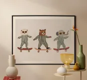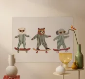 Animali che fanno skateboard, arte murale della nursery, decorazioni per la stanza dei giochi carta hahnemühle