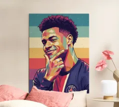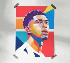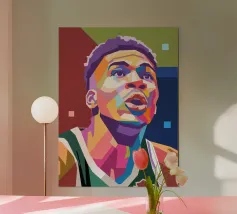 Il WPAP (Wedha's Pop Art Portrait) di Anthony Davis è una rappresentazione sorprendente che cattura l'essenza della star dell'NBA attraverso una lente vibrante e geometrica. Questo stile artistico utilizza forme audaci e intersecanti e una tavolozza di colori vivaci per raffigurare i tratti distintivi di Davis, come la fronte prominente e lo sguardo intenso, che simboleggiano la sua presenza dinamica sul campo da basket.