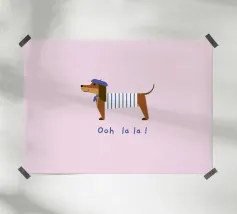 Questa opera d'arte fonde umorismo, fantasia e adorabili vibrazioni canine in un disegno divertente e magico.