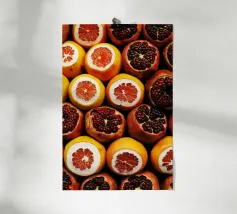 Assortimento variopinto di agrumi freschi e fette di kiwi disposte carta hahnemühle
