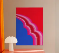 Vibranti linee blu e rosa si intrecciano per creare una composizione dinamica e astratta. Le linee rosa hanno una qualità frastagliata e venata che contrasta con i toni blu più profondi, suggerendo profondità e movimento.