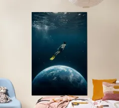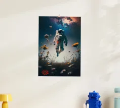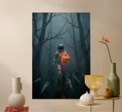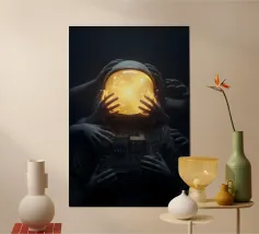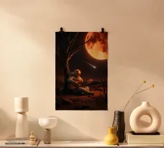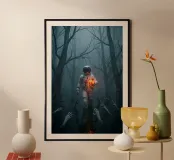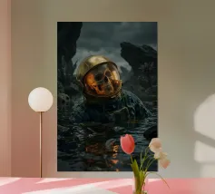 Questa opera d'arte oscura e cinematografica fonde fantascienza e orrore in una potente scena surreale. Un astronauta attraversa una foresta nebbiosa e infestata, circondato da mani inquietanti che emergono dall'acqua sottostante. Nella sua mano, un cuore incandescente proietta una luce calda contro la fredda atmosfera blu, simboleggiando la speranza, l'umanità e la sopravvivenza nell'ignoto. L'illuminazione tetra, gli alberi nebbiosi e il contrasto drammatico creano una storia visiva intensa ed emozionante. Perfetto per gli appassionati di dark fantasy, space art, temi psicologici e decorazioni murali d'atmosfera, questo disegno aggiunge mistero e profondità.