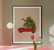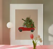 L'auto di Natale rossa con l'albero di Natale sul tetto su sfondo beige è una grande decorazione natalizia che irradia calore, accoglienza e allegria. Perfetta per chi vuole rallegrare la propria casa o è alla ricerca di una dolce immagine da regalare. Adatto anche come accogliente maglione per Natale e come maglione di gruppo per fantastiche foto natalizie. Personalizzatelo con il vostro nome o con una bella frase natalizia!