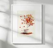 Un delicato gioco di vapore e fogliame, dove il calore di una tazza di caffè sboccia in una cascata di foglie autunnali. "Autumn Brew" celebra la tranquilla poesia dei rituali quotidiani, fondendo il minimalismo con la vibrante tavolozza dell'autunno. Reso in alta risoluzione con dettagli nitidi, questo pezzo si abbina perfettamente a interni moderni, spazi di metà secolo e accoglienti decorazioni stagionali. Un richiamo senza tempo al comfort, al calore e alla bellezza dei momenti fugaci.