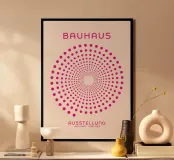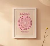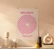 Un poster visivamente elettrico che combina la rigorosa geometria del movimento Bauhaus con un'esplosione di colore contemporaneo. Il disegno è caratterizzato da un avvincente motivo a cerchi concentrici di punti uniformi in un brillante rosa/fucsia, che si sviluppa a spirale verso l'interno per creare una vibrante illusione ottica di profondità. La composizione è pulita e d'impatto, ancorata dal testo "BAUHAUS AUSSTELLUNG JULI-SEPT 1919-1923". Questo download digitale di alta qualità (7000x5000 pixel, 300 dpi) garantisce una chiarezza eccezionale e una saturazione dei colori superiore, perfetta per uno spazio moderno, massimalista o ispirato alla Pop Art.
