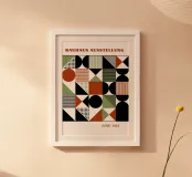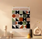 Un poster intricato e dinamico ispirato alla Bauhaus Ausstellung (Mostra) del giugno 1923. Questa opera d'arte presenta una fitta griglia geometrica o mosaico, in cui ogni unità quadrata è riempita di forme astratte, strisce e punti. La composizione presenta un bellissimo mix di verde salvia e terracotta vibrante con elementi in bianco e nero ad alto contrasto. È una dimostrazione magistrale dei principi del Costruttivismo e del Design Modernista. Fornito come poster digitale di qualità superiore (7000x5000 pixel, 300 dpi), garantisce la resa di ogni dettaglio e texture con eccezionale chiarezza. Ideale per aggiungere un
