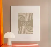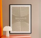 Un poster astratto sofisticato, dai toni neutri, ispirato al movimento Bauhaus e all'illusione dinamica della Op Art. Il disegno presenta quattro quadranti di linee curve e radianti color crema su uno sfondo solido e caldo beige/taupe, creando un'ipnotica illusione ottica di profondità e movimento. Questo pezzo offre una visione minimalista ed elegante dell'astrazione geometrica. Il testo "BAUHAUS" e "JULI - SEPT 1923" sono centrati. Fornita come file digitale di alta qualità (7000×5000 pixel, 300 dpi), questa opera d'arte garantisce una stampa nitida e ad alta definizione, perfetta per un interno contemporaneo dai toni neutri.