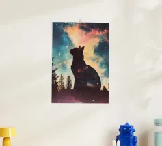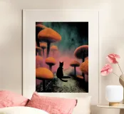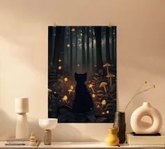 Gatto nero nella mistica foresta di funghi carta hahnemühle