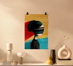 Un ritratto sorprendente e minimalista di una donna con un bob nero e un audace rossetto rosso. L'aspetto senza volto, che si concentra sulla silhouette e sulle caratteristiche principali, crea un'immagine moderna, grafica e misteriosa.