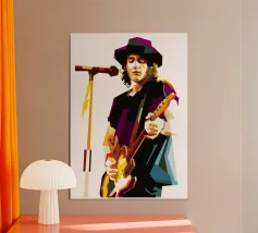 Bruce Springsteen in stile WPAP è un ritratto vibrante e geometrico del Boss, caratterizzato da forme audaci e spigolose e da sorprendenti contrasti di colore. Questa moderna tecnica pop-art cattura la sua intensa energia e la sua presenza leggendaria, riflettendo la sua profonda influenza sulla musica rock. Lo stile WPAP esalta la sua immagine iconica, sottolineando le sue performance appassionate e la sua abilità di narratore attraverso tinte dinamiche e ad alto contrasto.