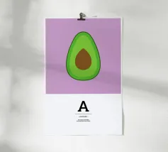 Chiaro, nitido, classico: la A di mela dà il via all'alfabeto colorato delle prelibatezze salutari. Questo poster combina un design elegante con un intelligente effetto di apprendimento, perfetto per le stanze dei bambini, le cucine o le aule scolastiche.