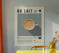 tazza di caffè café au lait mappa della francia testo del 1800 illustrazione di chicchi di caffè caffè con latte caffè preparato latte al vapore layout infografico descrizione della bevanda bevanda al caffè caffè francese icona mappa riferimento storico superficie cremosa del caffè contenuto della bevanda blocco di testo sfondo marrone bevanda calda scheda informativa
