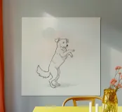 Cane giocoso in piedi su due zampe in un semplice artistico carta hahnemühle