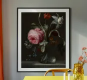 Fiori in vaso di Simon Verelst (1669 circa) mostra una natura morta floreale finemente disposta con dettagli brillanti. Rose, tulipani e altri fiori si dispiegano in un semplice vaso di vetro, magistralmente illuminato nello stile barocco olandese. Quest'opera testimonia la virtuosa tecnica pittorica di Verelst e rappresenta un punto di forza della pittura floreale classica. In mostra al Cleveland Museum of Art.