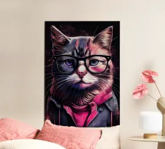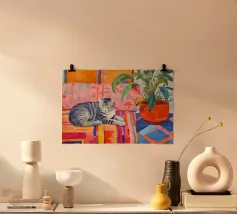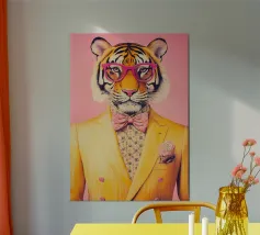 Illustrazione stilizzata di un carismatico ghepardo vestito in modo casual chic con occhiali da sole eleganti e una posa da dandy sicuro di sé. Con la sua tavolozza vibrante e il suo tocco favoloso, quest'opera d'arte celebra l'individualità, lo stile e la fiducia in se stessi. Perfetto se amate le vibrazioni della fauna tropicale con uno spirito moderno.